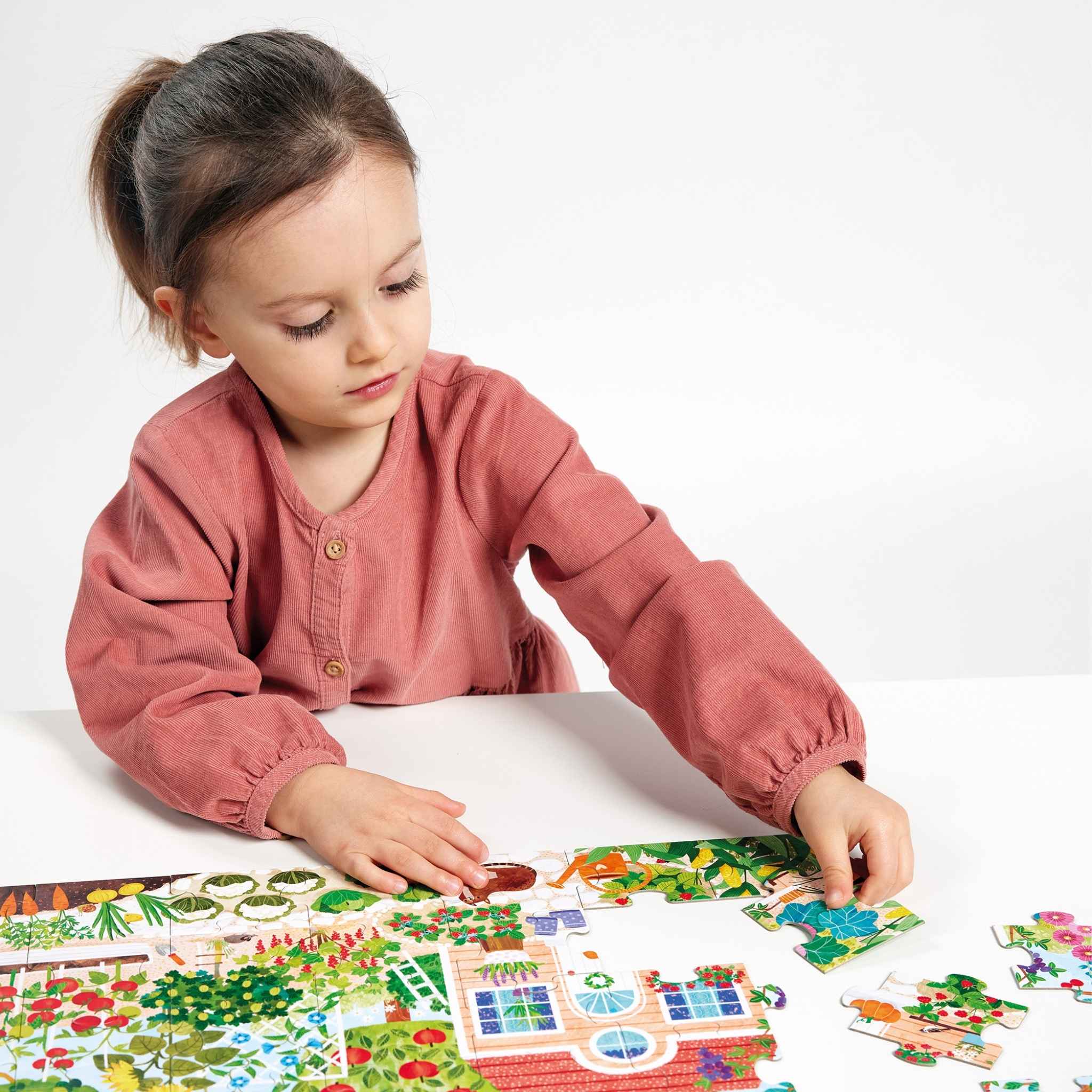 Enjoy assembling this amazing 40-piece puzzle to create a beautiful garden scene filled with tasty foods and bright flowers. When the puzzle is complete, use the 32 provided tiles to add endless creative ways to play, as well as inspiring fun ways to understand and remember what grows in the garden.