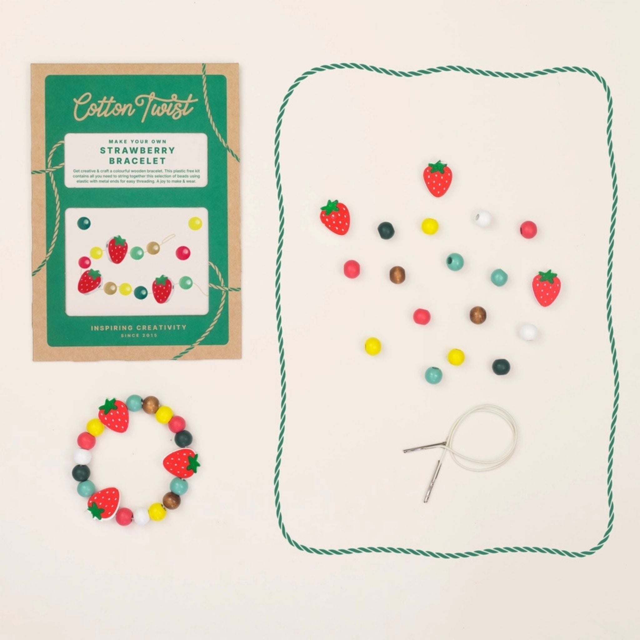 Perfect for little crafters and creators this super sweet strawberry bracelet kit contains easy to thread elastic and fun colourful beads so children can make their very own bracelet.