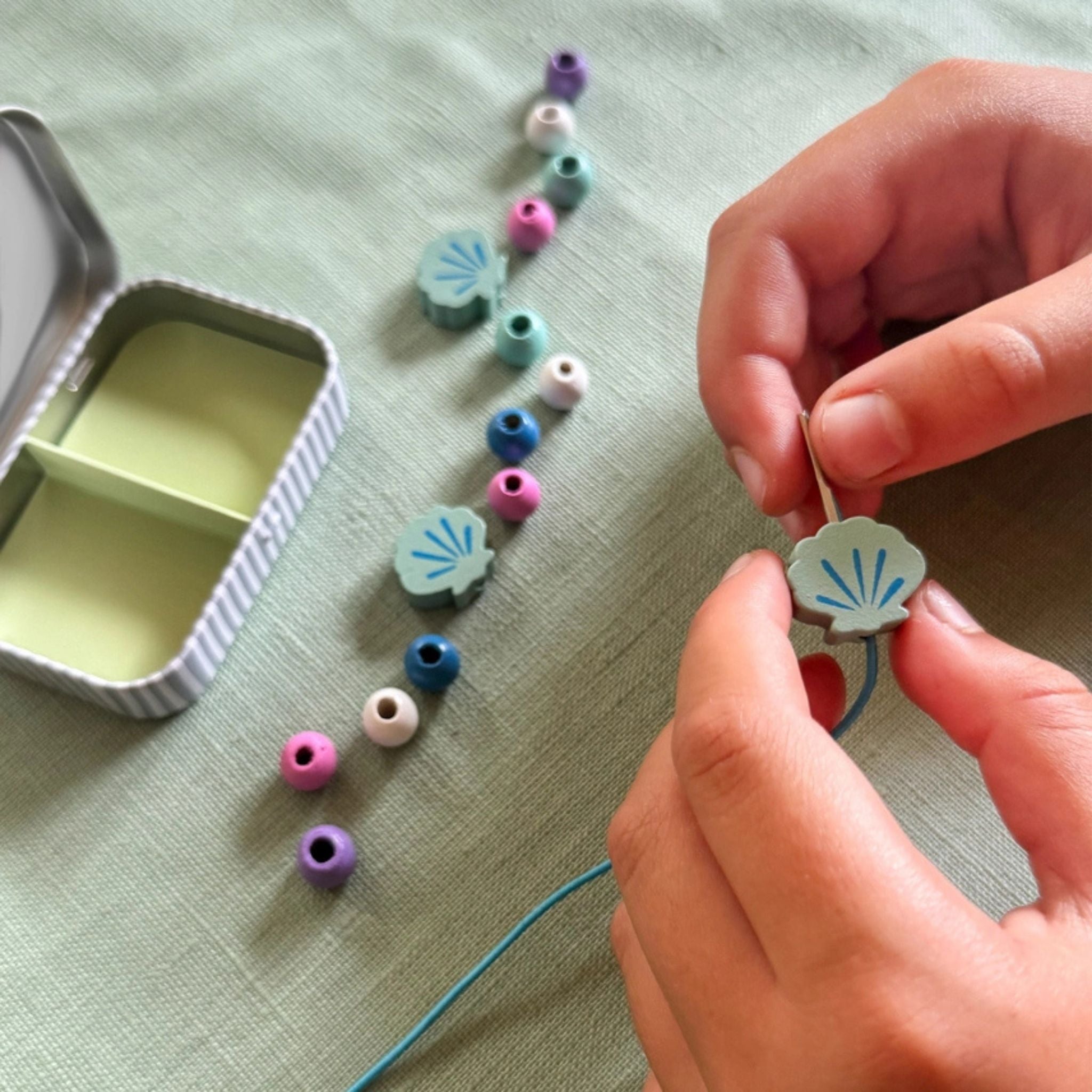 Perfect for little crafters and creators this beautiful mermaid bracelet kit contains easy to thread elastic and fun seashell beads so children can make their very own bracelet.