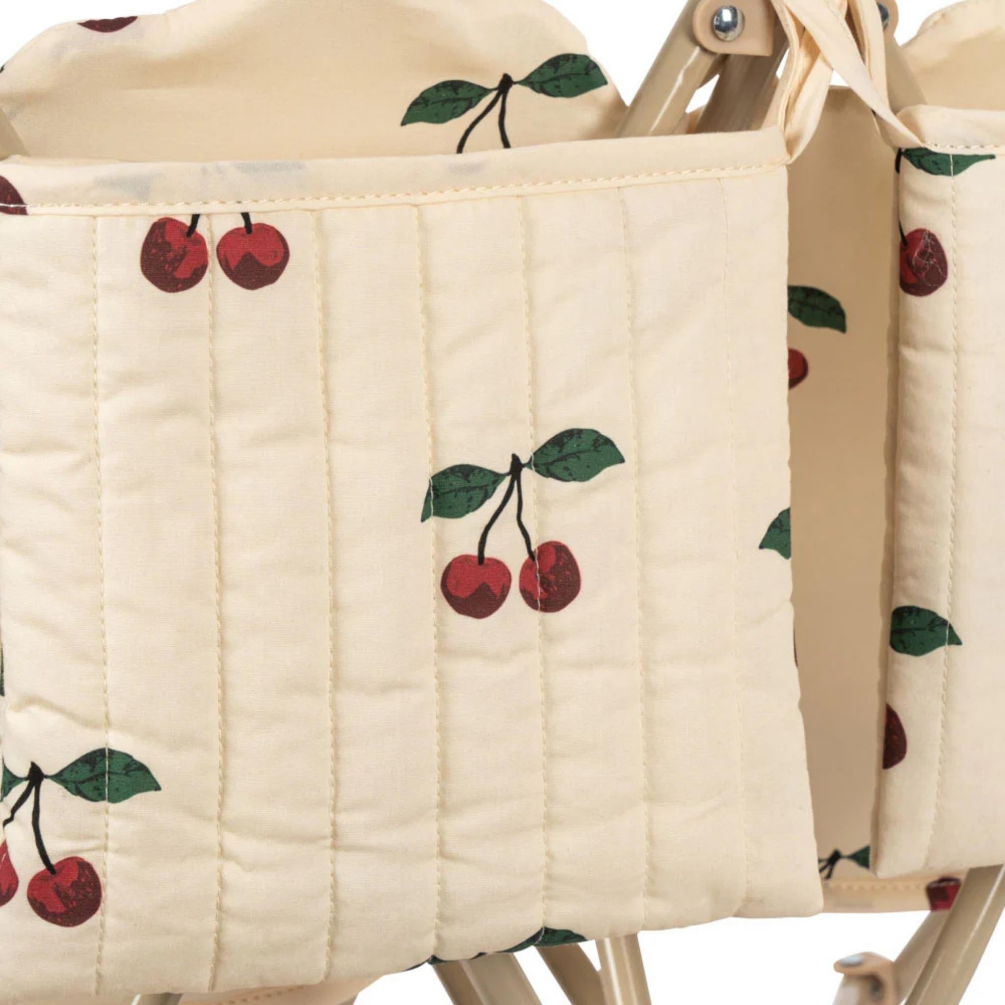 Designed to be as stylish as it is practical, this adorable double stroller features two spacious side by side seats in a charming cream and cherry print, complete with comfortable harnesses to keep your dolls safe and snug as you head out on your next adventure.