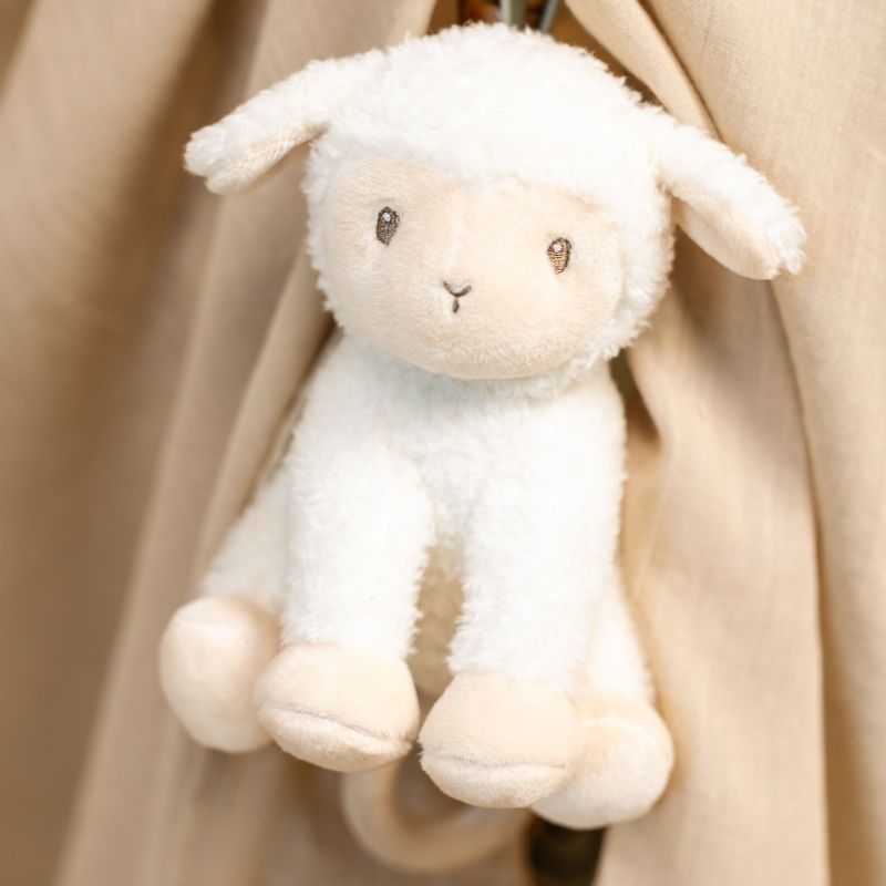 This sweet music box provides a helping hand in creating a nice bedtime routine. Simply pull down the little sheep and a soothing lullaby will start playing. This reassuring sound will help a tired baby fall asleep.
