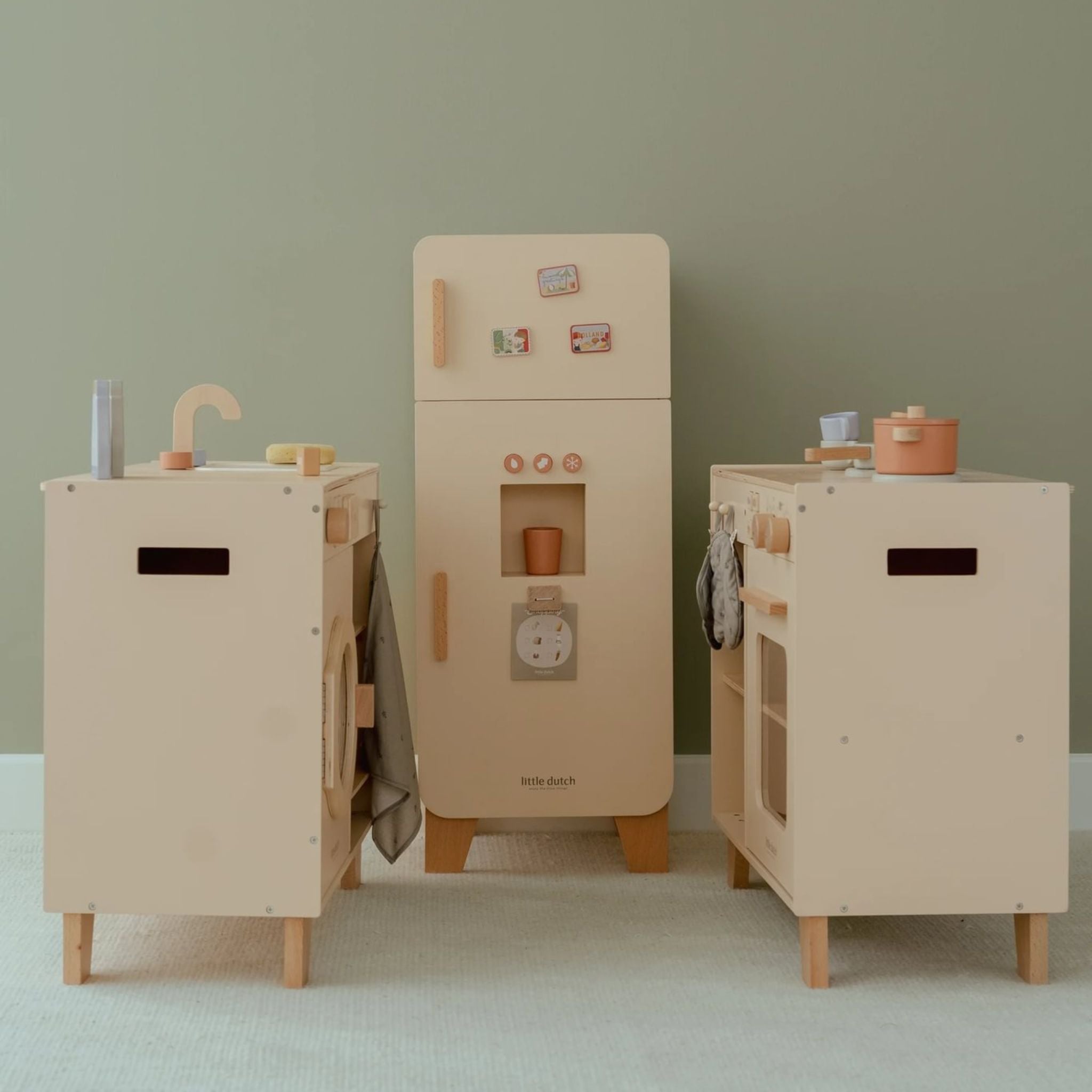 A perfect addition to any wooden kitchen set, this set pairs beautifully with the limited edition Little Dutch Wooden Washing Machine and the Little Dutch Wooden Fridge.