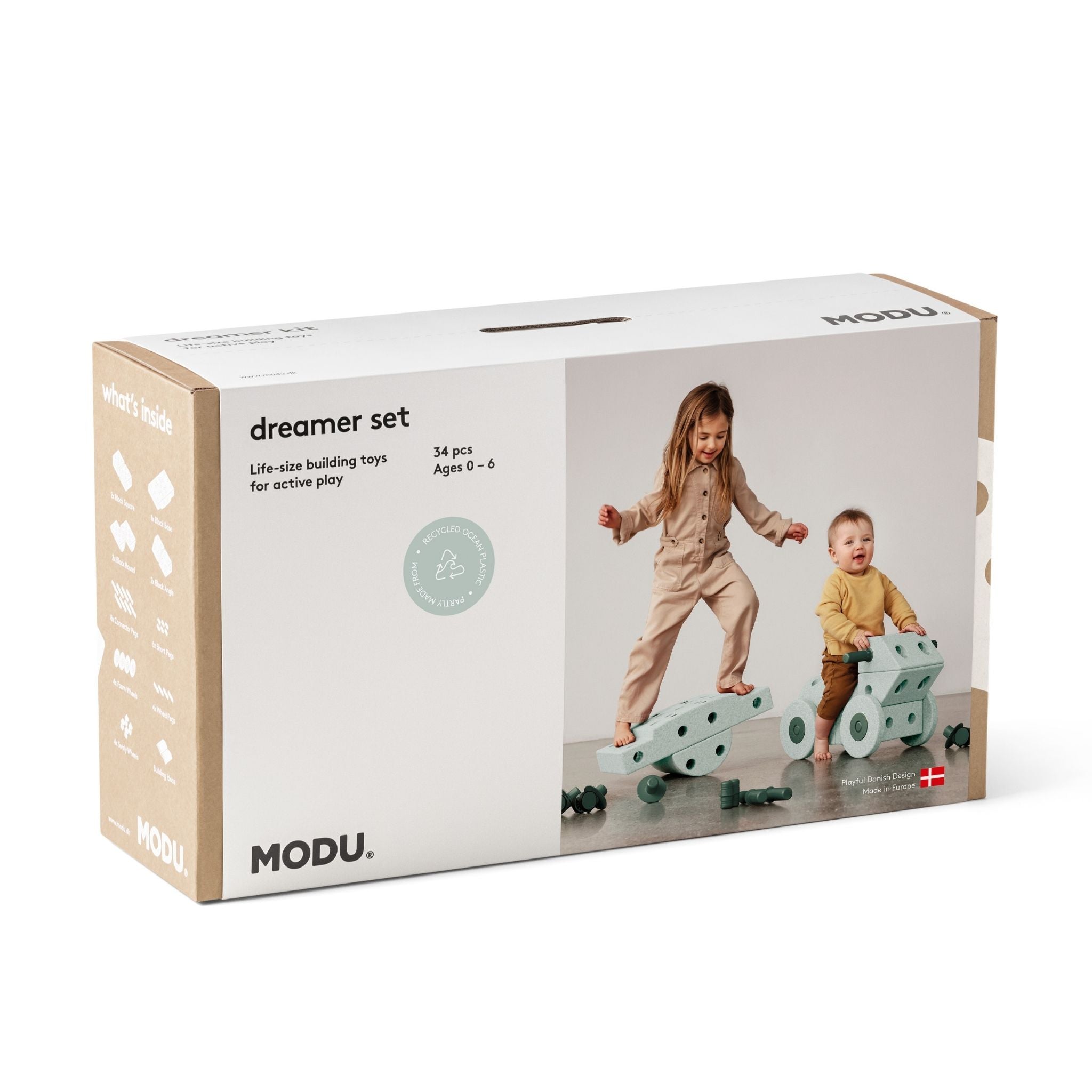 The Dreamer Set is the ultimate MODU experience, designed for little builders with big ideas. With even more pieces and the widest range of builds possible, this set takes imaginative and creative play to a whole new level. From ridable vehicles to rocking toys, climbing creations to balance challenges, children can design, build and test their own inventions while developing essential gross and fine motor skills.