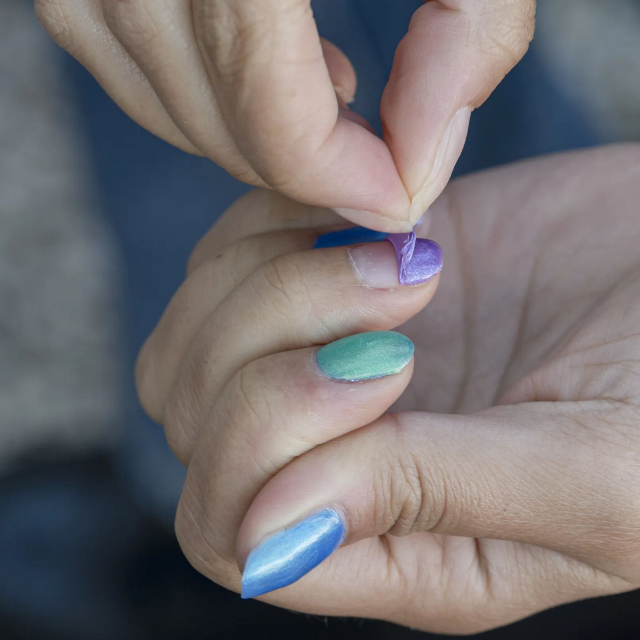Crafted from vegan and child-friendly ingredients, this glamorous purple glitter polish is easy to apply and just as easy to remove thanks to its gentle water-based formula and peelable design - no nail polish remover required.