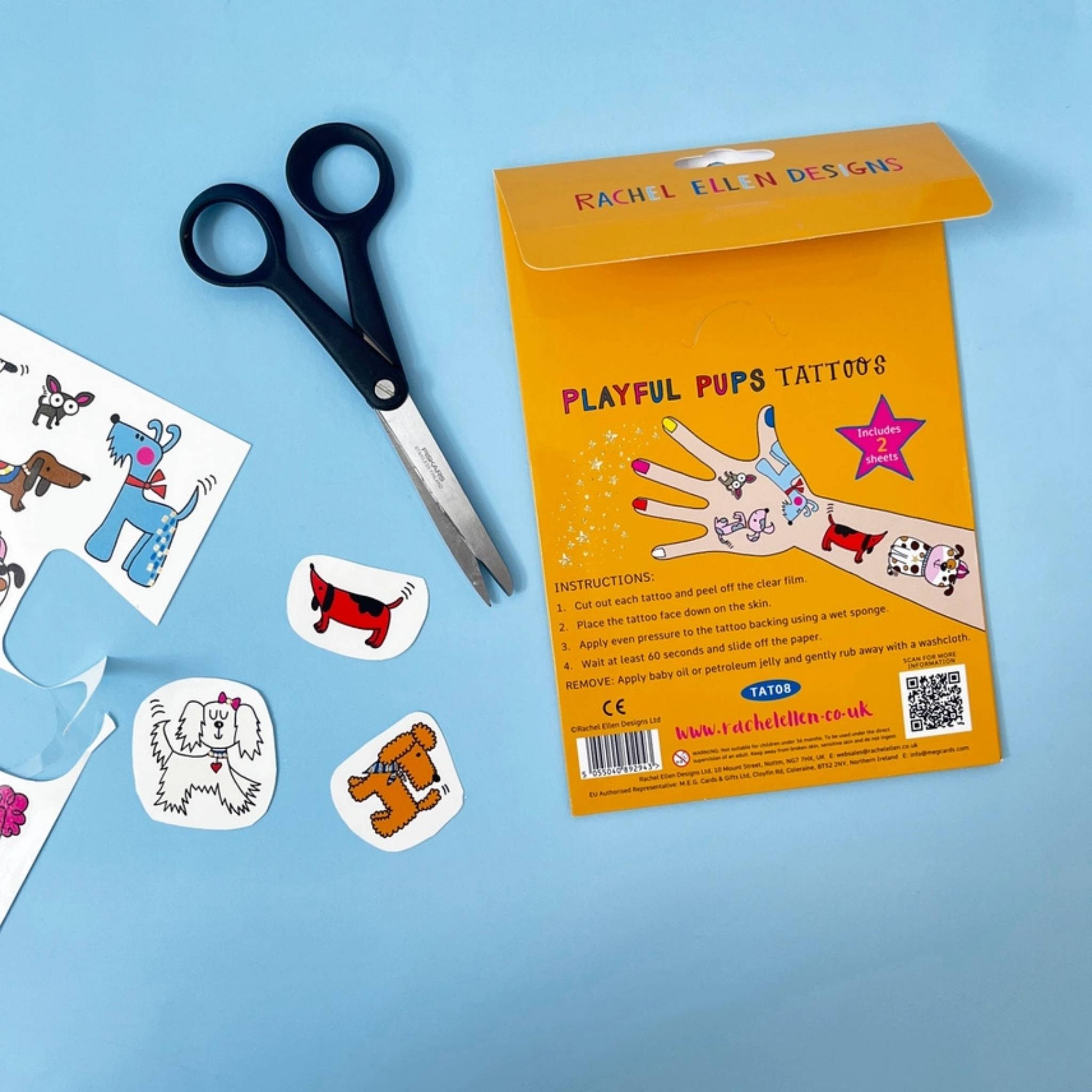 Have fun and experiment with the Rachel Ellen Designs Temporary Tattoos - Playful Pups.