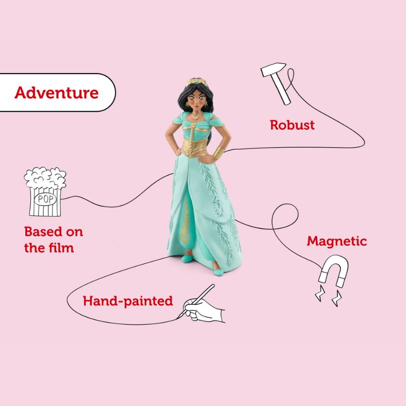 The Tonies Disney Jasmine character magically...well magnetically attaches your Toniebox, allowing little listeners to listen to something different every time. Switch with different Tonie characters and quickly jump between audiobooks, music or your own interactive audio adventures.